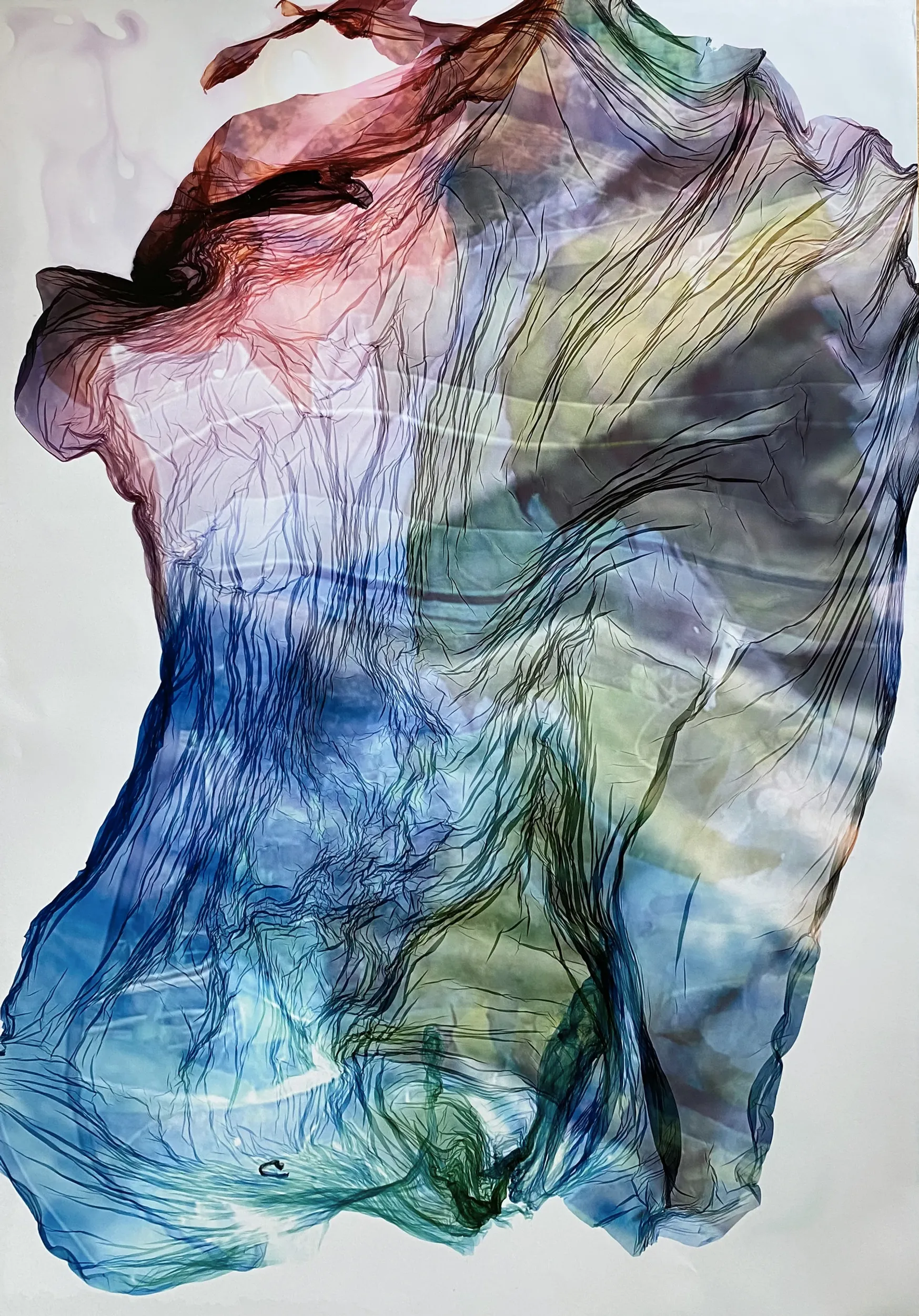 Erin Bird (b. 1978) is a UK-based American artist, known for her distinctive “waterprinting” technique—a hybrid process that merges photographic imagery with painterly abstraction through the elemental force of water.